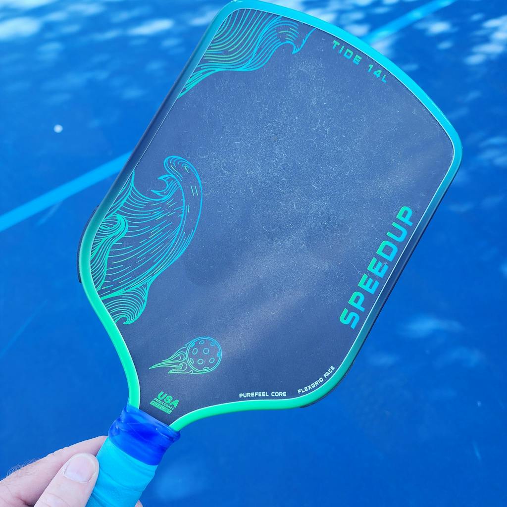 The Speedup Tide 14 Series is a one-of-a-kind paddle built for players who demand confidence and explosive performance in every swing. Powered by our PureFeel Core, the Tide 14 delivers unmatched predictability while unleashing immense power and pop, giving you total control without sacrificing firepower. The innovative FlexGrid Face, engineered with carbon fiber layered at perpendicular angles, creates a softer, flexier feel that maximizes ball dwell, touch, and heavy spin for precise shot-making. Finished with a traditional 5.5–5.7 inch handle and available in Elongated, Hybrid, and Widebody shapes, the Tide 14 Series is designed to provide elite power, feel, and spin—perfectly tuned for every style of player.